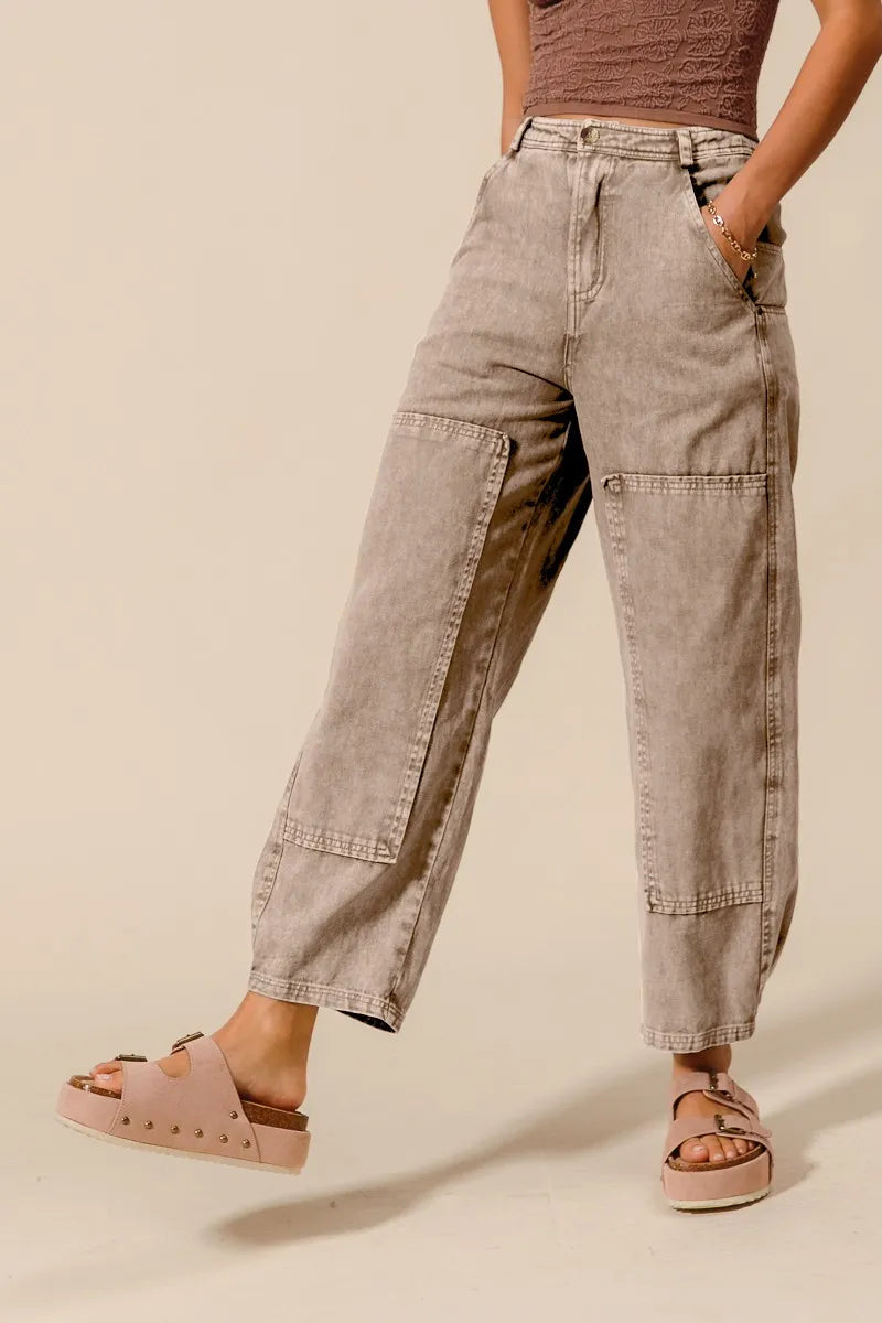 SO ME Mineral Washed Mid Rise Barrel Shape Pants