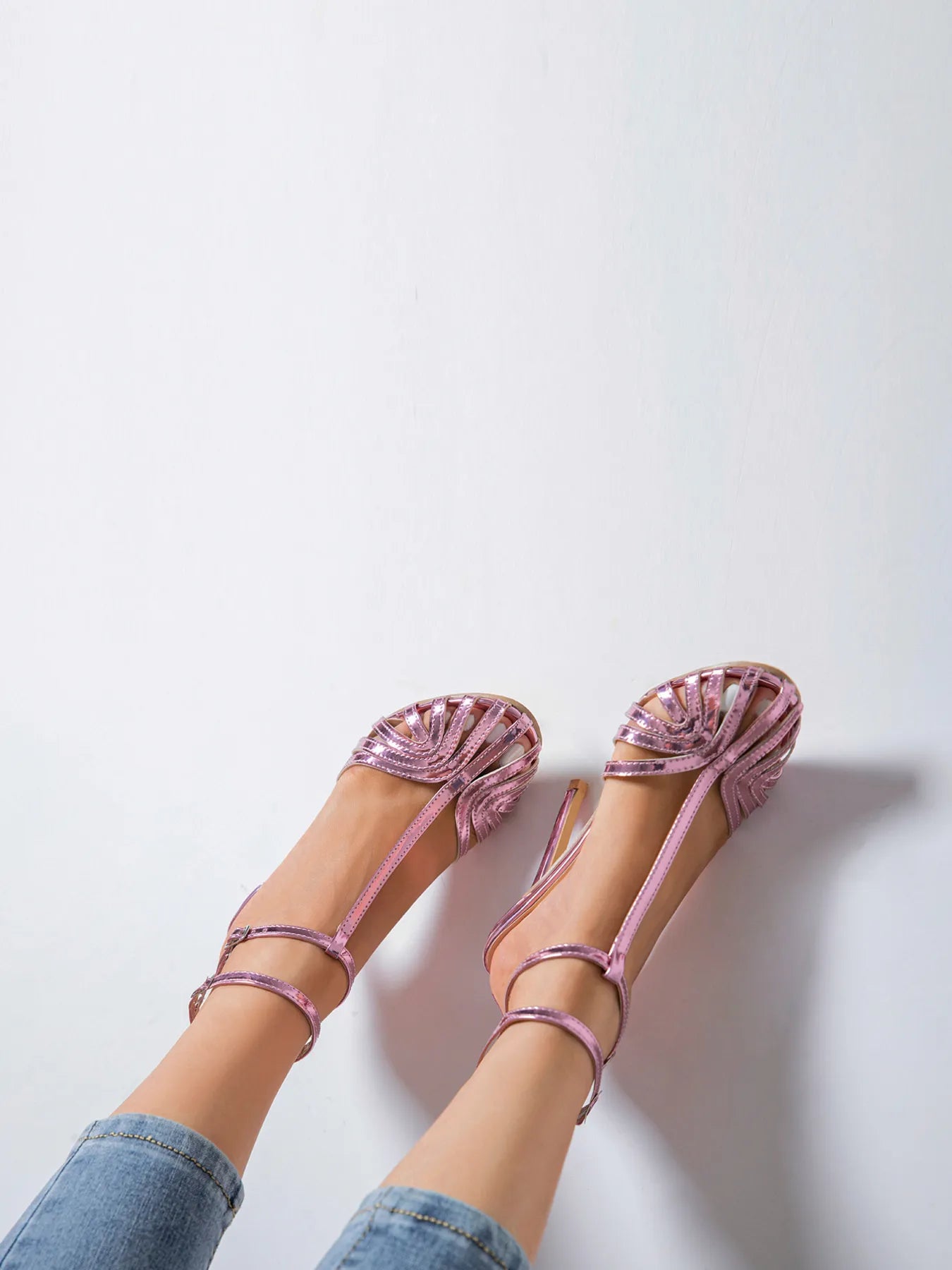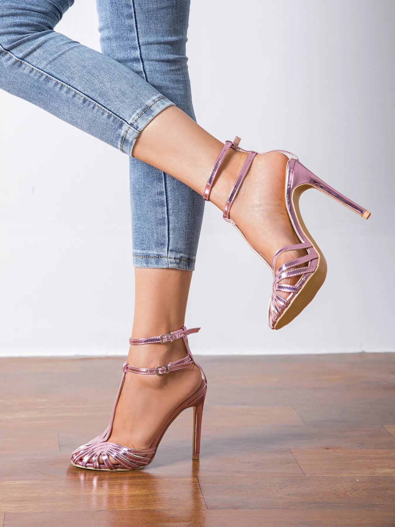 Strappy Stiletto Heeled Sandals with Ankle Strap Design