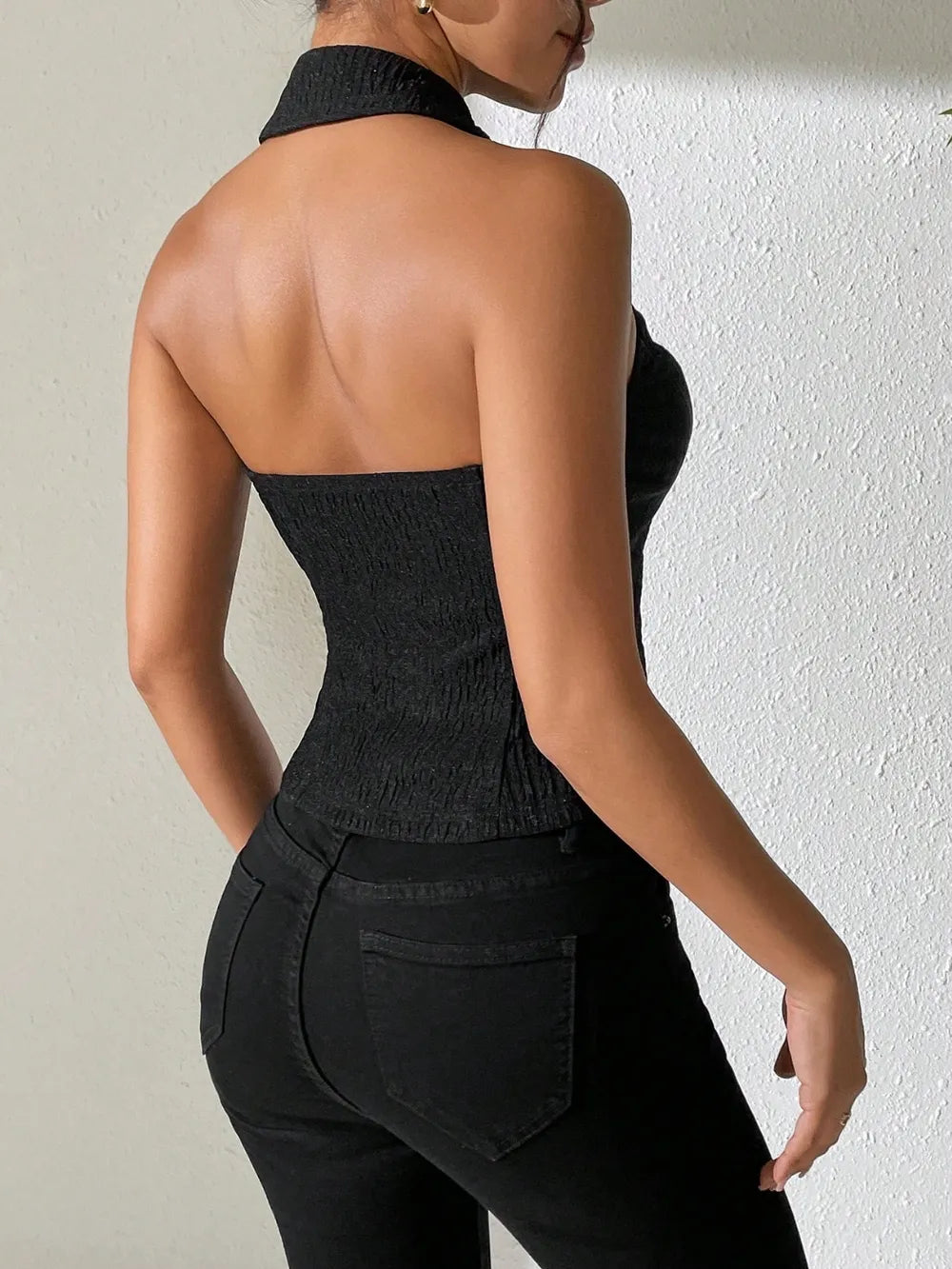 Texture Ruched Halter Top