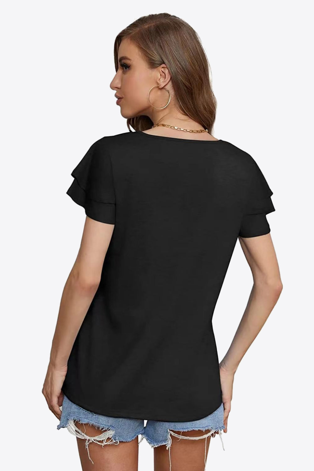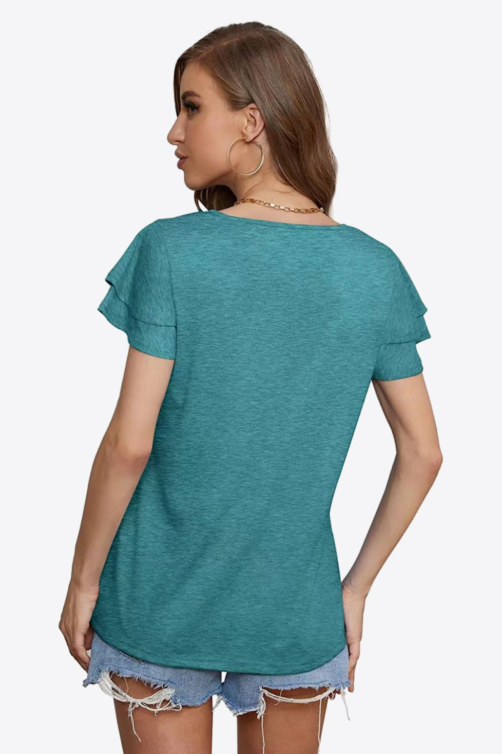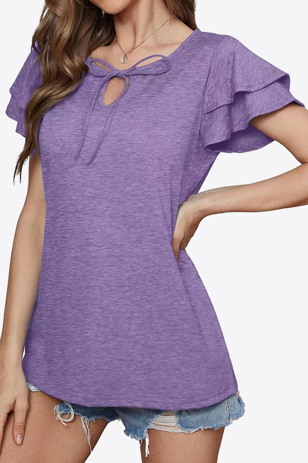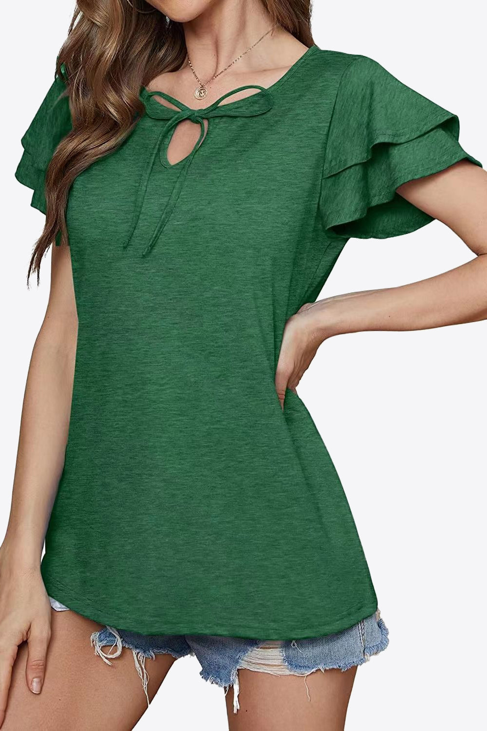Sizing category: Regular Pattern type: Solid Style: Casual, minimalist Features: Tie Neckline: Notched Length: Long Sleeve length: Short sleeves Sleeve...