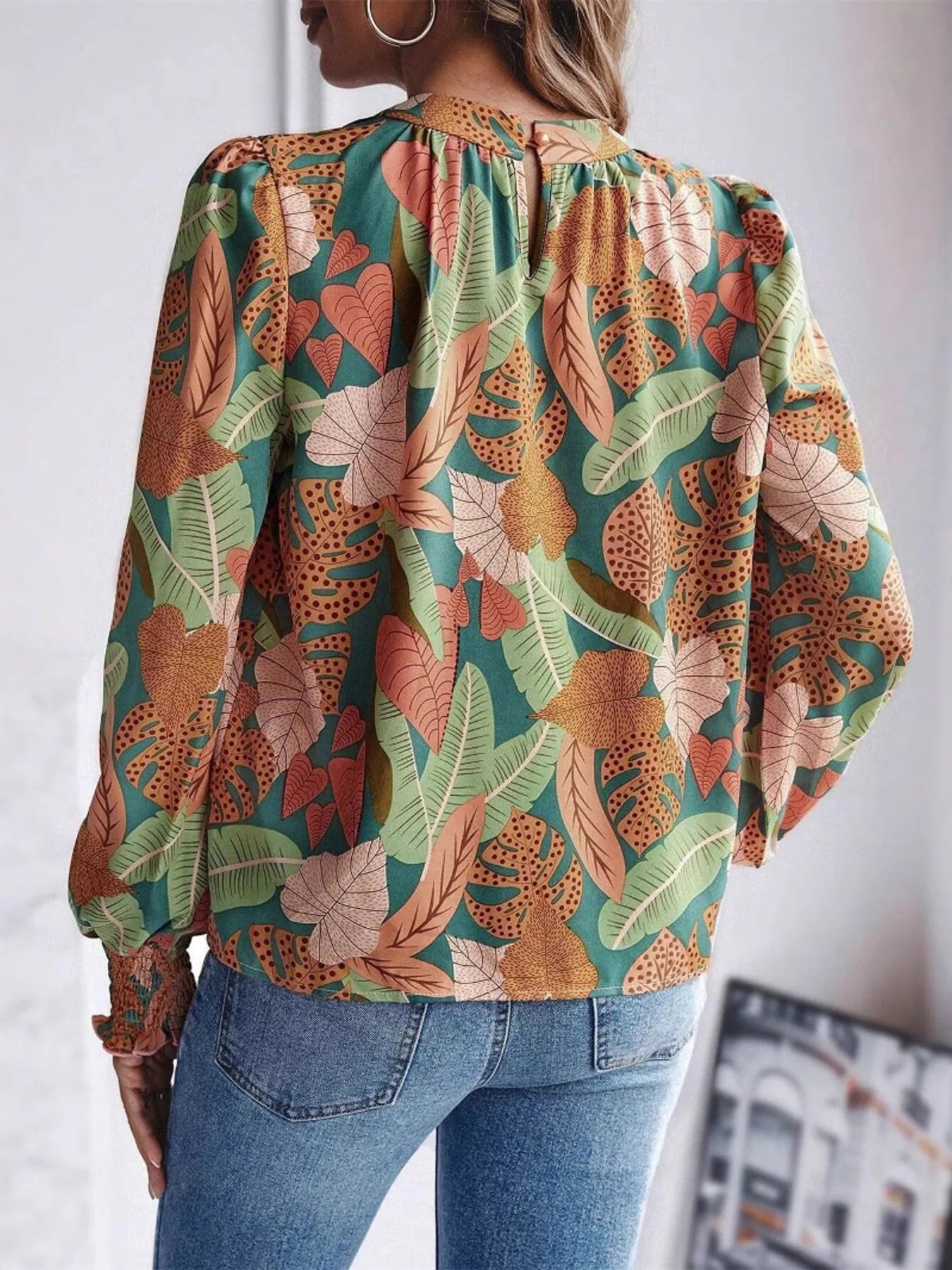Tropical Print Long Sleeve Blouse