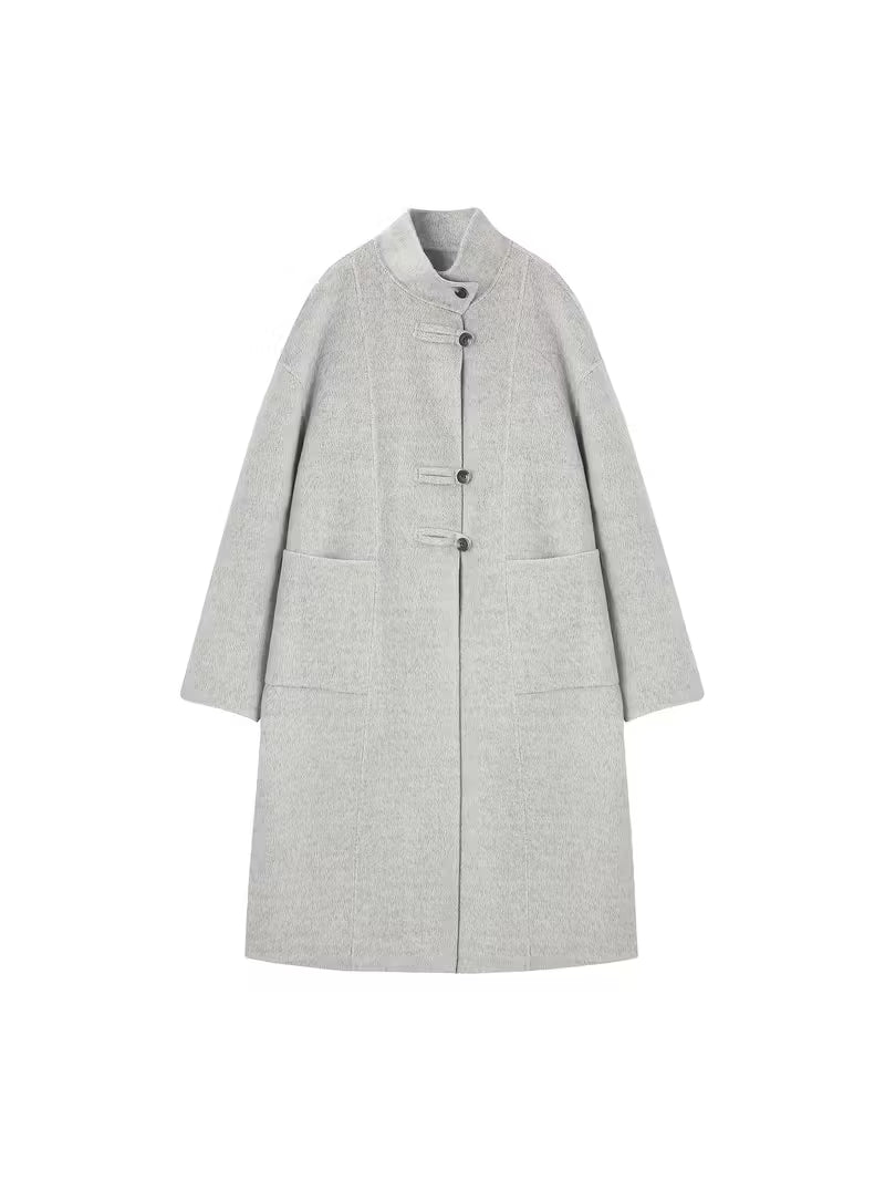 XWI Women's Elegant Double-Breasted Winter Coat - 100% Wool